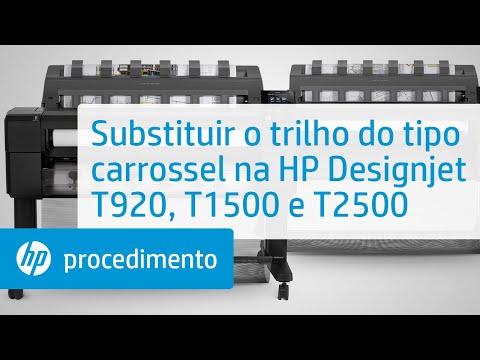 Veja como substituir o trilho do tipo carrossel nas impressoras HP Designjet T920 e T1500 ePrinters e T2500 eMultifunction. O modelo mostrado é o T1500; porém as instruções se aplicam a toda a linha de impressoras T920 e T1500 ePrinters e T2500 eMultifunction.